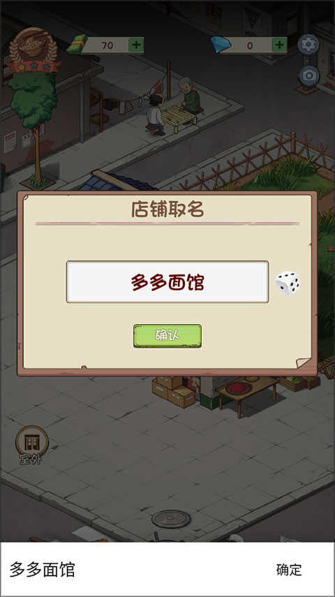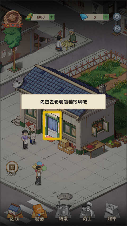 1、把爸爸的面馆安装好后进入游戏,第一步先点击店面,进去看看店铺的环境。