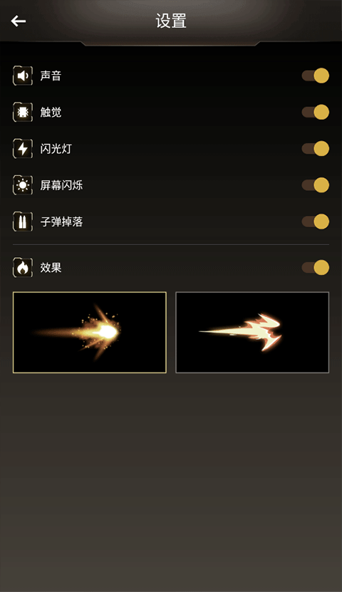 6、右上角设置内还可以调整枪声效果!