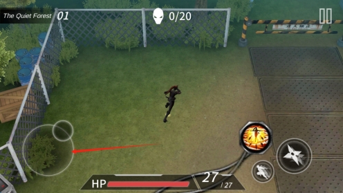 3、在游戏操作环节,按照箭头指引,借助虚拟摇杆与技能按键来操控角色、消灭敌人,同时通过拨动轮盘完成移动操作。