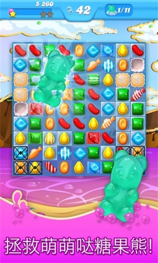 首先要通过交换相邻的两颗糖果,让至少三颗同色糖果连成一行或一列,以此实现消除并获取分数;之后若能消除四颗及以上的糖果,就能生成具备强力消除效果的特殊道具;此外还加入了苏打水机制,处于水中的糖果会向上漂浮,同时玩家需要在限定步数内,通过消除糖果与障碍物来达成各关卡的特定目标。