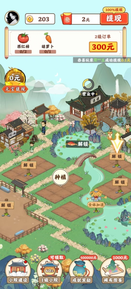 2、通过完成任务或达成成就来解锁池塘、果园、牧场等新区域,以此扩大经营规模。