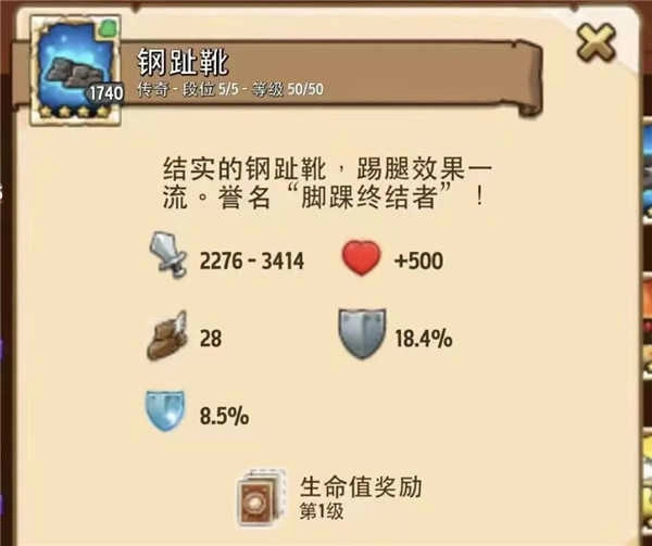鞋:钢趾靴,提供18.4%物理抗性、8.5%魔法抗性,同时还增加了相当可观的攻击力。