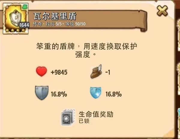 盾牌瓦尔基里盾,16.8%双抗,-1速度。