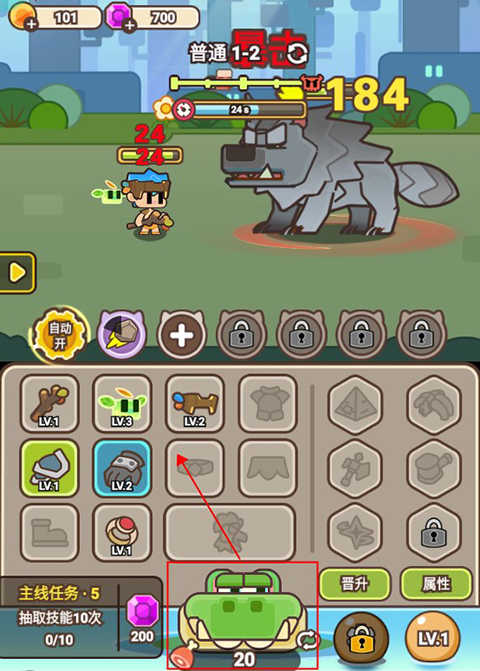 1、这款游戏的操作十分简便,主角会在画面上方自动进行战斗,玩家仅需点击下方的小鳄鱼,就能随机获取装备与资源,助力主角提升战斗能力,从而更有效地战胜敌人。