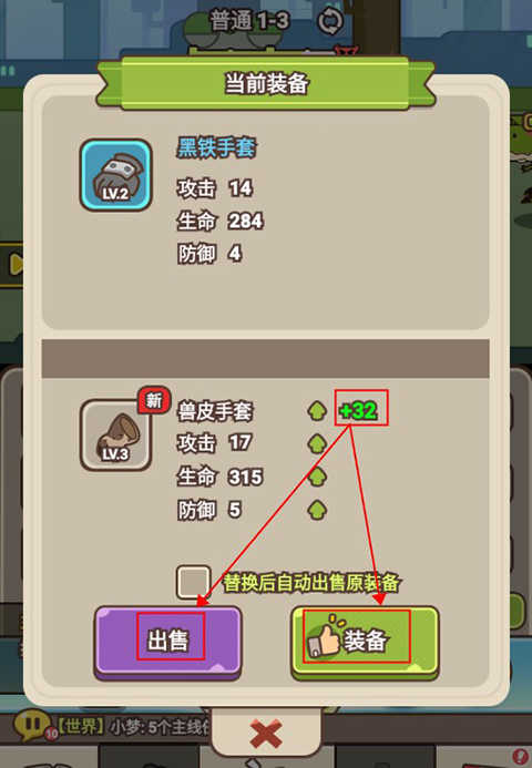2、获取同类型装备时,能依据战力差距自主选择穿戴或是直接售卖,灵活调节战斗配置。