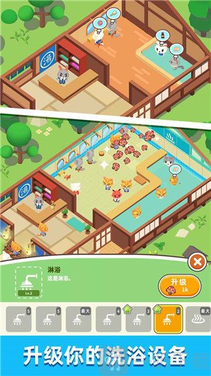 在这片专属区域里,你要负责打造独特的洗浴空间,同时满足各类小动物的不同需求。它们既能在这里惬意地享受洗浴时光,也能围坐在一起用餐、玩耍。整个过程的操作方式十分自由,随着经验值的提升和等级的增长,你可以逐步升级洗浴空间的各项设备,以此吸引更多小动物前来。