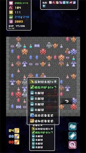 3. 你可以通过打开宝箱或者战胜怪物来获得装备,点击页面下方的装备栏就能对装备进行搭配。
