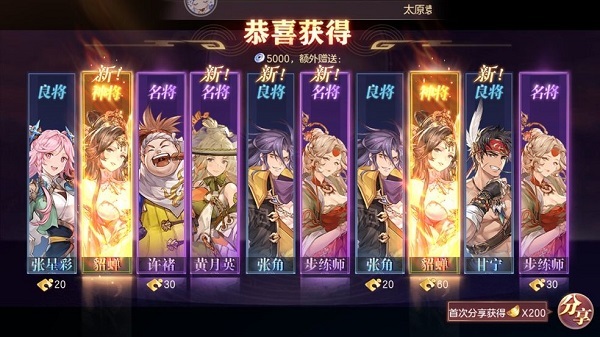 4、神兵:它不仅会对所有上阵武将的属性产生影响,还能于战斗过程中提供特殊技能,助力扭转战局。每日参与赤壁试炼,即可获取神兵碎片与神锻材料。