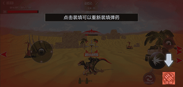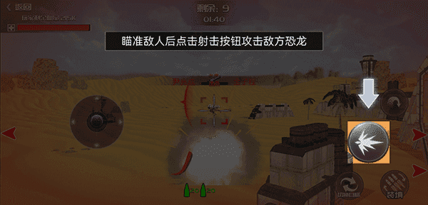 3、待准心瞄准敌人后,点击射击按钮攻击地方恐龙