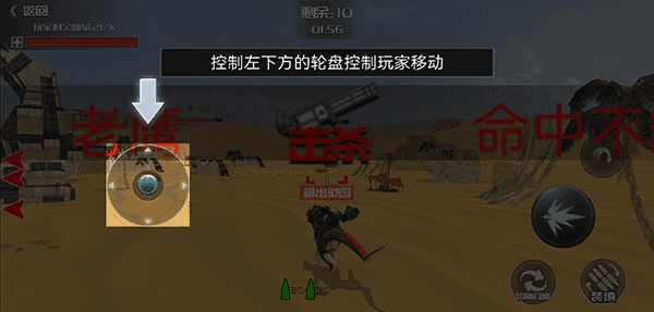 2、用手操控左下方的轮盘,就能让恐龙移动;而另一只手在右侧屏幕滑动,则可以调整视角。