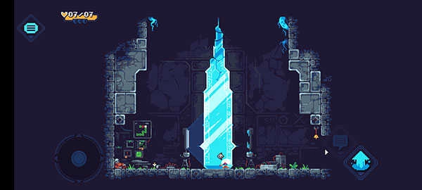 3、角色的移动可通过左侧轮盘来操控,点击右侧向上的箭头能够实现跳跃,若长按该箭头,跳跃高度会更高。