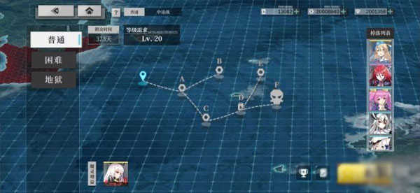 3、3-4 2驱逐1轻巡,旗舰被驱逐,B-D-F-J回港,BF两点将出炼油时间,时间为500炼油,收益极高。