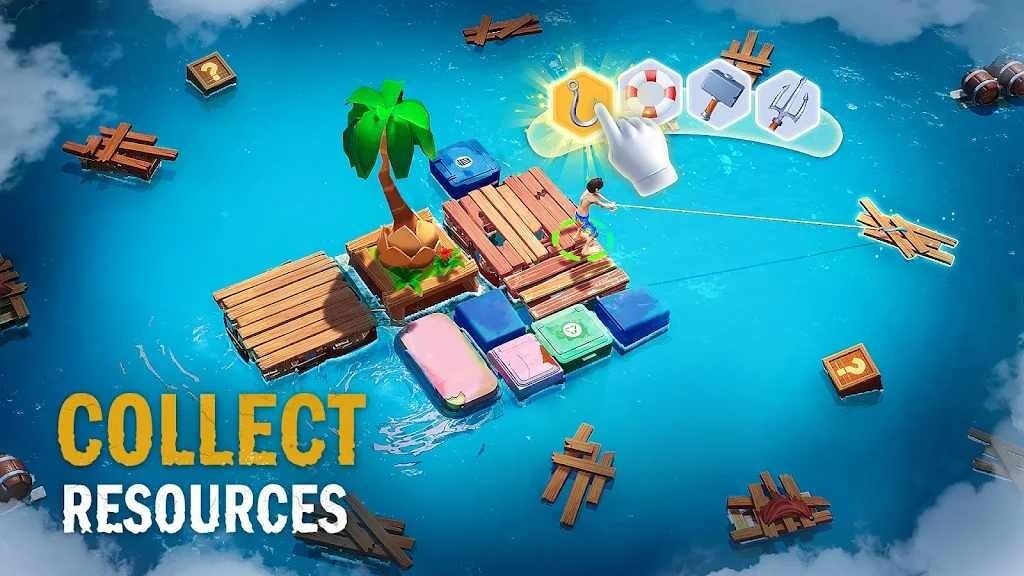 3、玩家要在海上进行生存挑战,你能够借助钩子拾取海上漂浮着的物品。