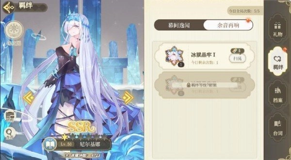 当然羁绊界面里的余音再响。只要乐姬好感度达到一定等级之后,你就可以每天通关余音再响获得珍贵的乐姬余音!攒到一定数量之后就可以实现乐姬的共鸣,大幅度提升乐姬的能力。