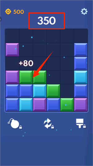 3、把相同颜色的方块连接起来就能完成消除操作,每次消除时一次性消去的方块数量越多,最后结算分数时能得到的加成奖励就越丰厚。
