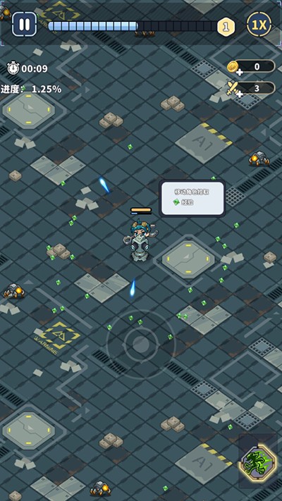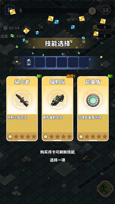 3、击败敌人后会掉落绿色能量,拾取该能量可增加经验值,当经验值累积满时,就能选择技能了。