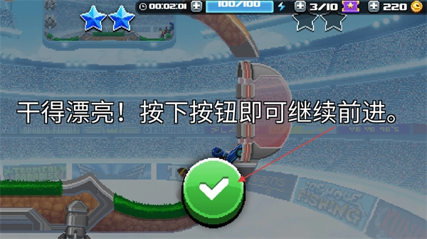 4、完成挑战后,按下绿色确认按钮,即可继续参与下一关的足球运动挑战。
