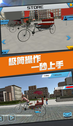 这是一款以黄包车为主题的趣味模拟经营游戏,玩家将化身车夫开启独特冒险。游戏中你可以搭载乘客,规划路线将他们送往目的地,完成各类任务还能获取丰厚奖励,随时准备出发迎接新挑战。游戏采用细腻的3D仿真建模技术,为玩家营造出极具真实感的游戏世界,感兴趣的话不妨来体验一番吧。