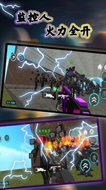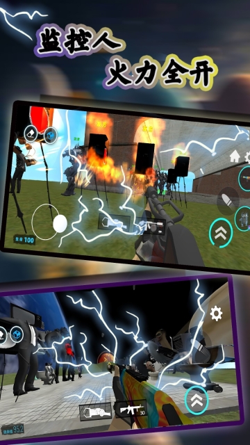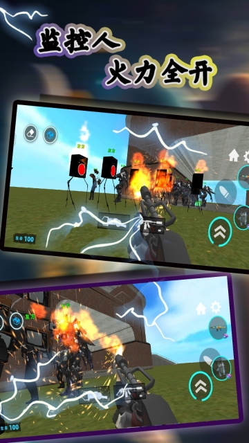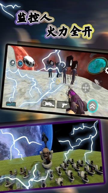 1、操控监控人或马桶人在开放世界里移动,探索各种奇特场景,搜寻武器和资源。