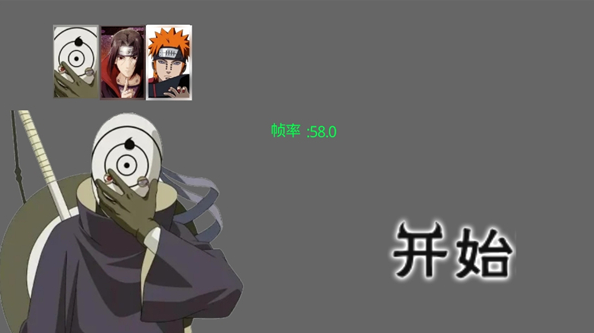 1、打开游戏后,挑选出火影忍者里的三位角色,分别是白面具带土、晓组织的鼬和晓组织的佩恩。