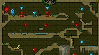 2. 若液体面积过大,人物无法通行,此时需寻找机制与石头,操控与液体颜色相同的人物推动石头,在液体上铺设道路,以便另一个冰火人能够顺利通过。