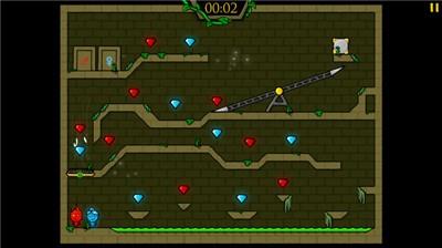 3. 当两个冰火人一同站在电梯的某一端时,操控位于这一端的角色进行跳跃。基于惯性原理,电梯会缓缓朝着角色跳跃的那一端倾斜。