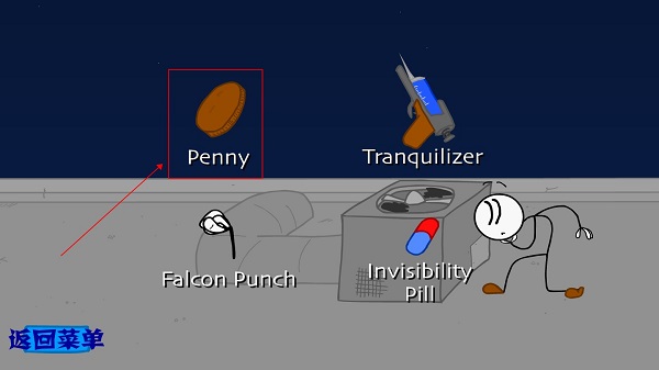 屋顶上有个保安在守门,这时有四个选项,选第一个“硬币抛掷”的话,就能在保安眼皮子底下顺利通过了。