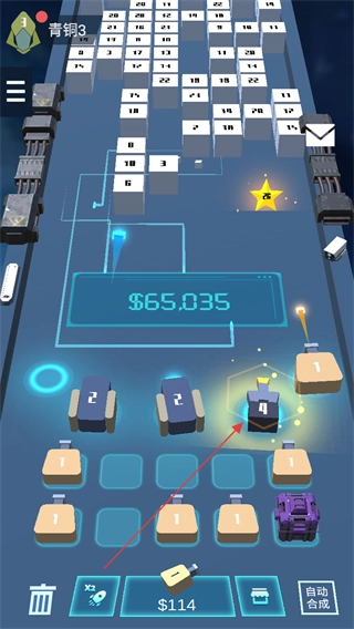 4、利用高等级道具的收益,快速积累金币,解锁更多上方格子,推进关卡进度。