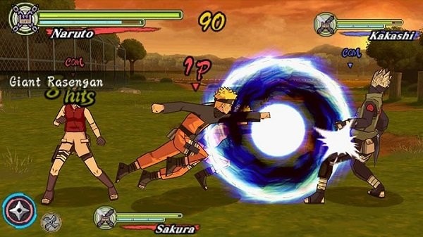 借助卡通渲染的3D绘图技术,在PSP平台上还原《火影忍者:疾风传》原作的世界观与战斗场景。