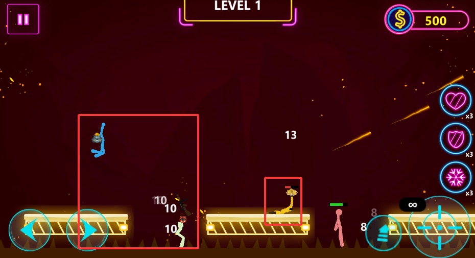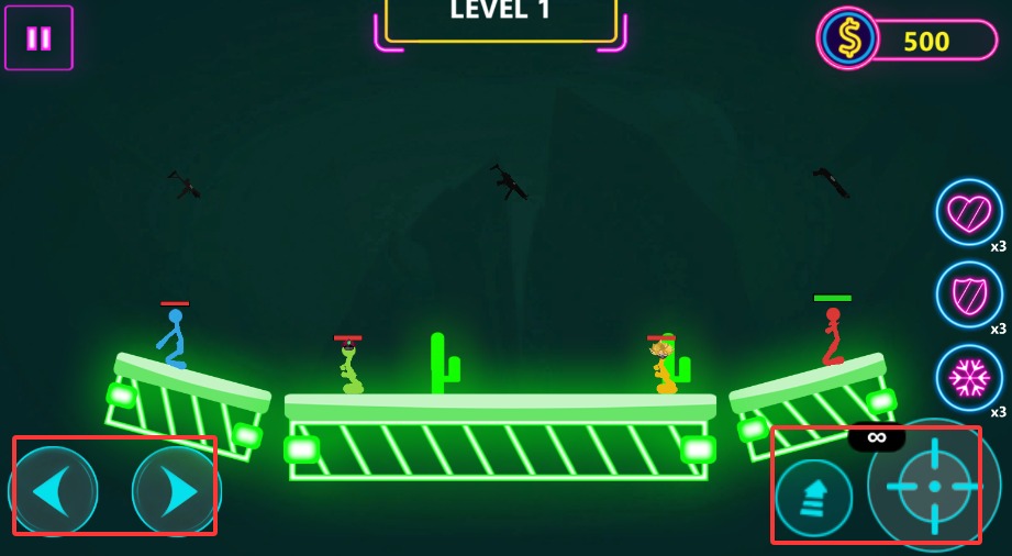 2、左右摇杆控制火柴人移动,想往哪走往哪走。