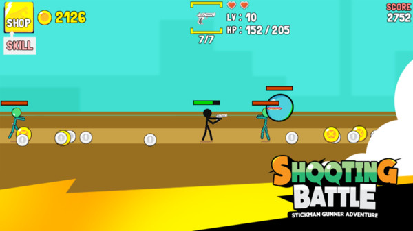 《火柴人射击战斗》是一款以火柴人为主题的横版动作射击游戏。在游戏中,玩家需要收集各类不同的武器,凭借有限的子弹和生命值来击败敌人;同时收集金币,用以购买更加强力的武器,从而获取更高的分数。这款游戏采用了全新的超精良画面制作,战斗体验也更为流畅,为横版射击类游戏注入了全新活力,能给玩家带来全新的射击感受,并且还有丰富的人物与武器可供解锁和更换。