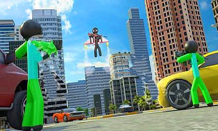 1、飞来飞去,打击罪犯,这就是火柴人极致飞跃