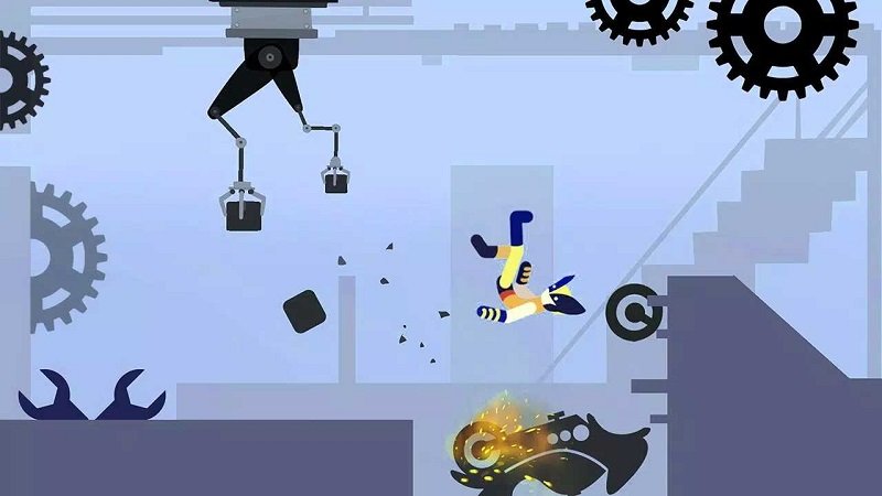 1、借助虚拟按键操控火柴人移动,在合适的时机触发机关以通过障碍。