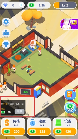 1、在游戏界面中,点击价格为200的选项将等级提升至5级,此操作会消耗金币以提升对应的属性。