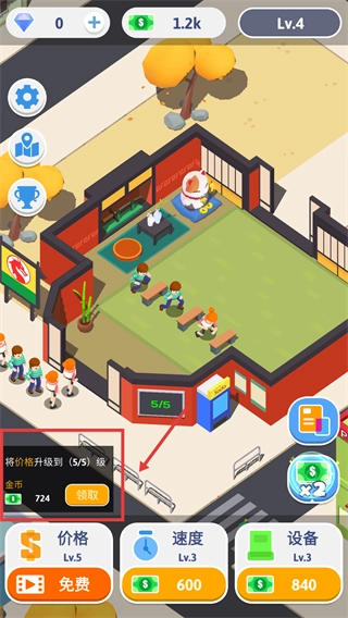 4、将速度升级到5级后,点击领取,获得奖励。