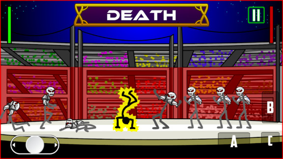 1美术风格简约而富有张力,火柴人形象结合夸张的物理效果,碰撞与技能特效营造出黑色幽默的视觉感受。