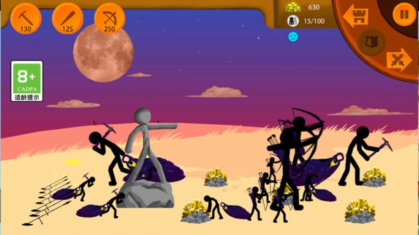 这款以火柴人为主题的粉碎类游戏,在玩法上与《火柴人战争遗产》有着相似的策略核心。玩家的核心目标是持续召唤不同类型的单位,逐步壮大己方的战斗队伍,最终依靠积累的兵力优势去战胜那些实力强劲的首领级敌人。