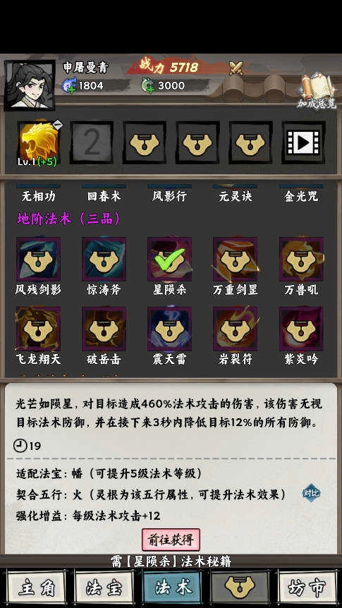 4、还能够解锁、搜集法宝与法术,提升自身的实力,参与各类战役。
