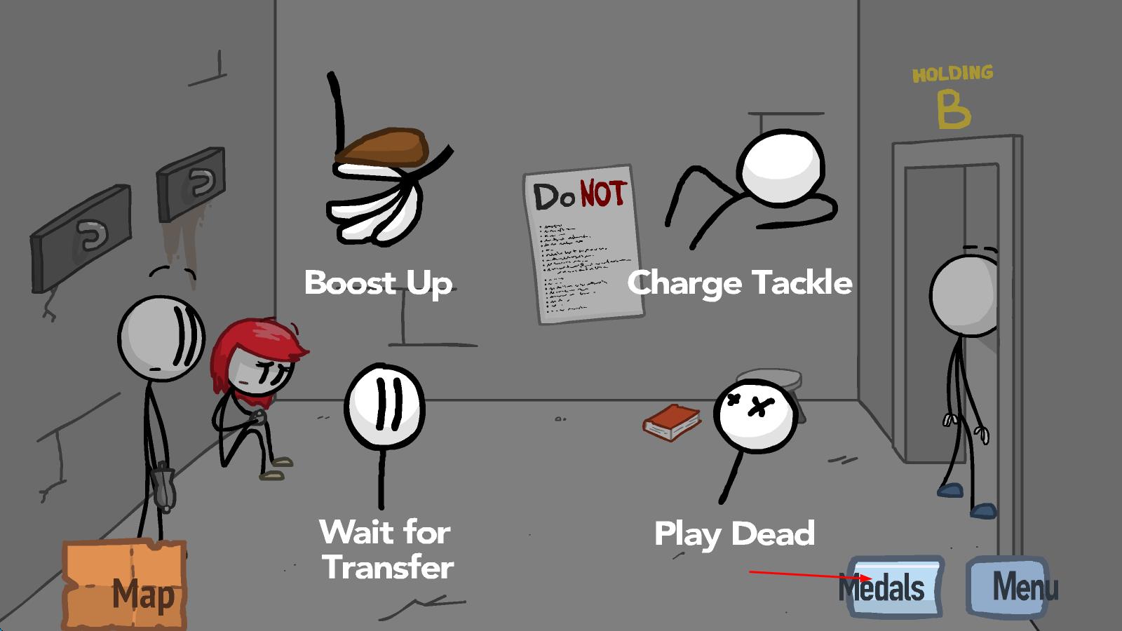 1刚进入游戏时,要认真听取老人给出的提示,以此开启越狱的旅程。从第一个选择开始行动,例如选择“boost up”这个选项,通过操控火柴人向上攀爬,从而开启探索环节。