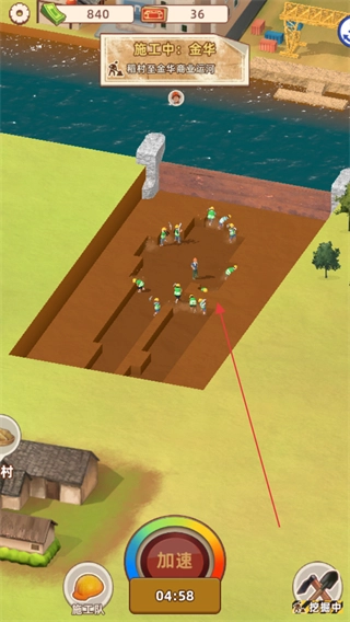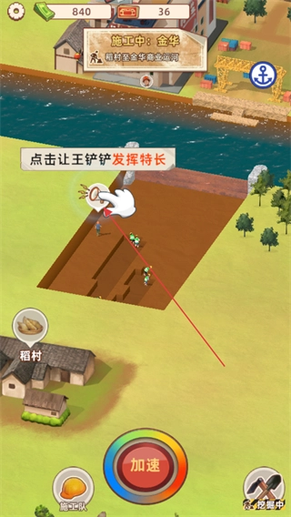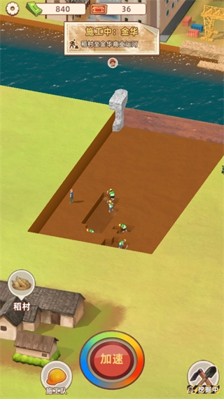 3、加速生效后,工人不间断作业,直至加速倒计时结束,以此推动运河挖掘进度。