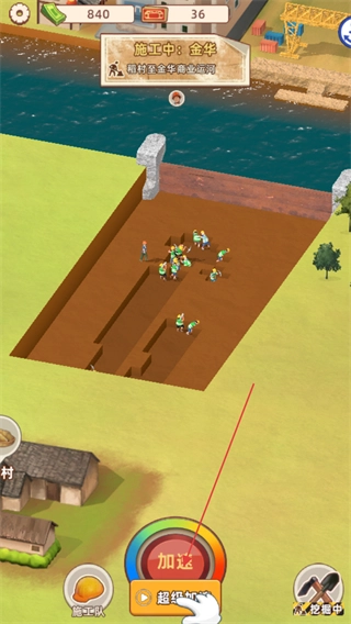 2、点击超级按钮可强化加速效果,增加施工工人数量,进而提升挖掘效率。