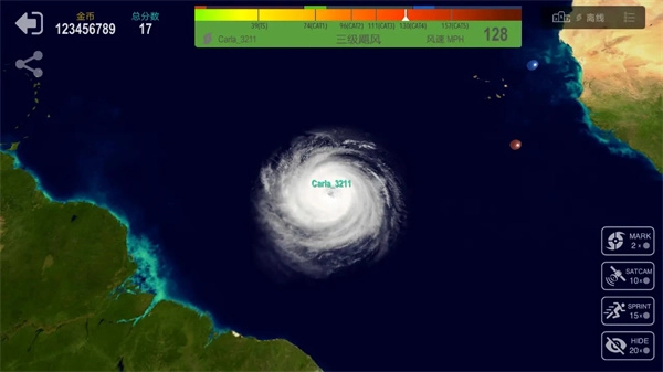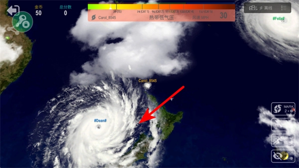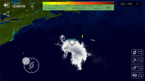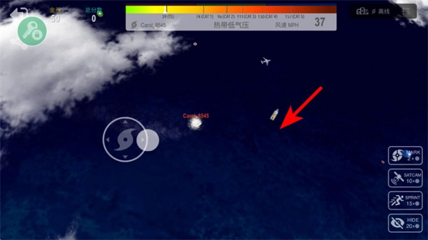 进入场景后,能够观察飓风的初始状态,比如位置和强度,接着借助操控区域来调整飓风的移动方向,使其朝着目标区域(像陆地)靠近,从而推进玩法进度。