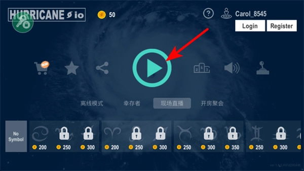 1、在游戏启动界面点击播放按钮,即可进入飓风模拟玩法。这是开启天气模拟与资源积累玩法的基础操作,能让你体验操控并获取核心内容。