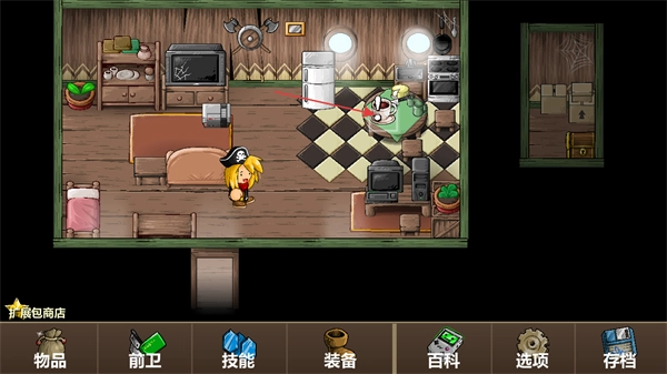 3、在室内交互场景下,你可以点击场景里的物品来进行交互,另外还能借助底部的物品、装备以及存档功能栏来管理资源配置与装备,并且要及时存档,以此保障游戏进程不受影响。