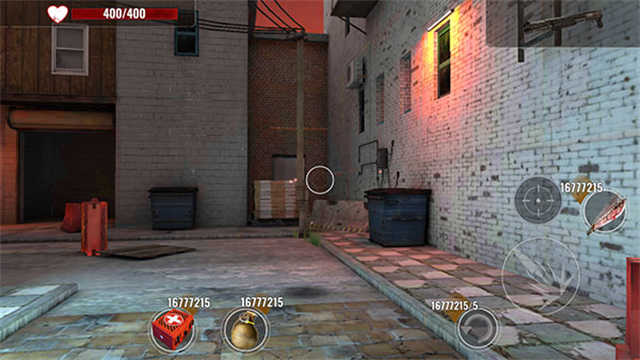 2、抓住枪支,将手指放在扳机上,瞄准并射击,以确保您在这款逼真的僵尸游戏中生存。
