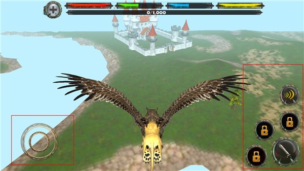 2、游戏中,左屏幕,可以控制狮鹫的移动的方向;