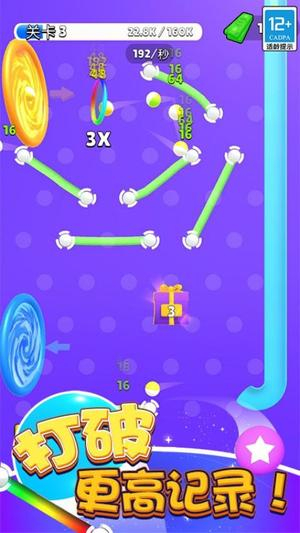3游戏里的彩色小球各有独特作用,像能穿过多层障碍、碰到目标后一分为多,或是让整体速度变快,巧妙借助这些带特殊效果的小球,能更快地通过关卡。