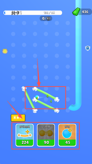 4、游戏里存在弹性绳、旋转绳等不同类型的绳索,若能合理增加它们的使用数量,将有利于搭建出更为复杂的反弹网络。