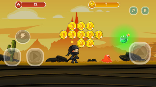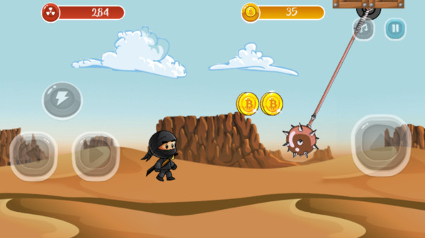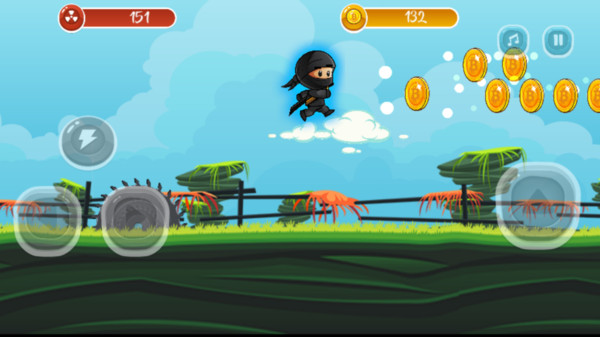 2、控制小忍者拾取金币道具,躲避障碍完成闯关