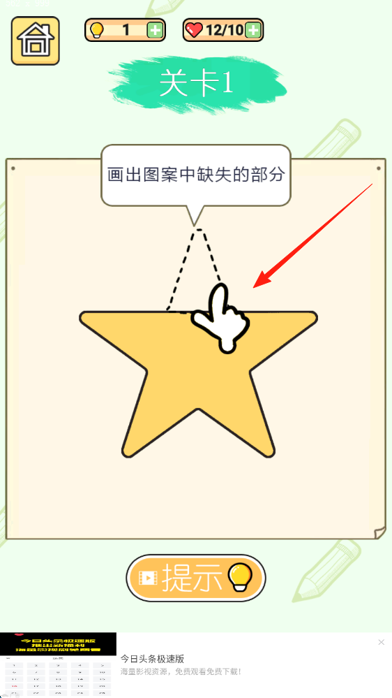 2、在关卡1里,仔细观察给出的图案,用手指描绘出其中缺失的部分,让图案变得完整,这样就能通过这一关卡了。